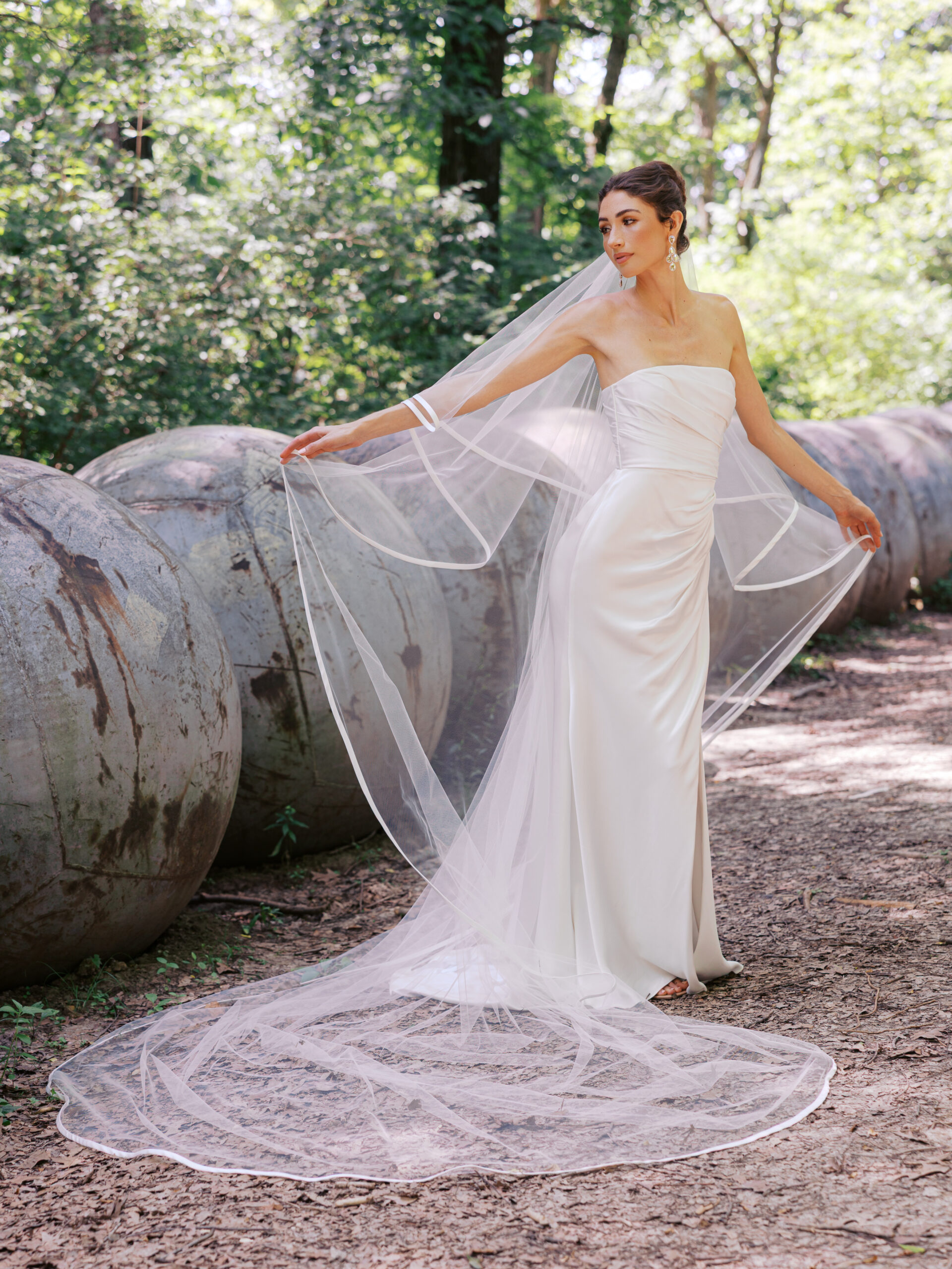 Trimmed in a bold Silk Mikado finish, Indulgence sees a cathedral veil elevated to classic luxury